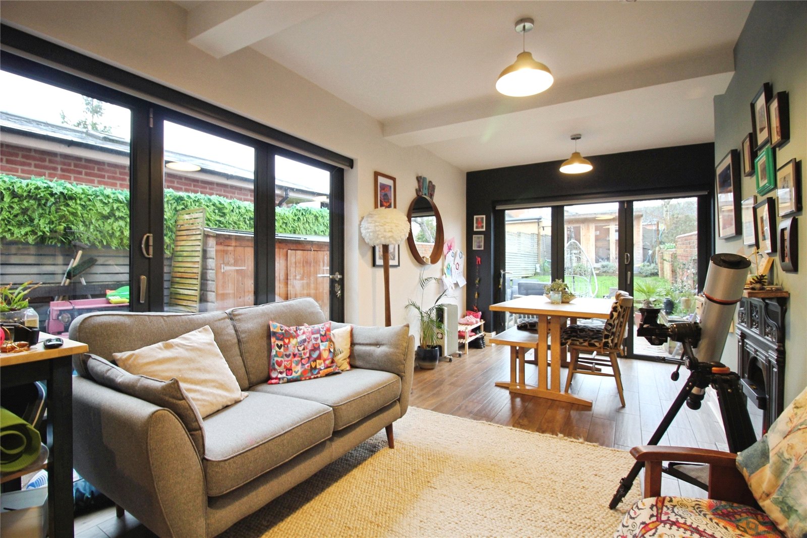 Lansley - This attractive bay fronted semi detached family home offers a wonderful blend of character features and modern styling located to the west of Reading town centre and just a stones throw from Prospect Park. The internal accommodation comprises an inviting entrance hall, front aspect bay fronted lounge with log burner, downstairs WC, an exceptional open plan kitchen/family/dining room with dual aspect BI folding doors, four bedrooms, three of which are good sized doubles, a separate wet room as well as a three piece family bathroom. Externally to the front is a gated block paved driveway and side access to the rear garden that is laid mainly to lawn with a patio area. There is also the further benefit of an outside office/sun room with light and power and additional off road parking that is accessed via Windrush Way. The property is conveniently located close to a range of local amenities, regular bus routes, Prospect Park and local schooling making this an excellent family home.
